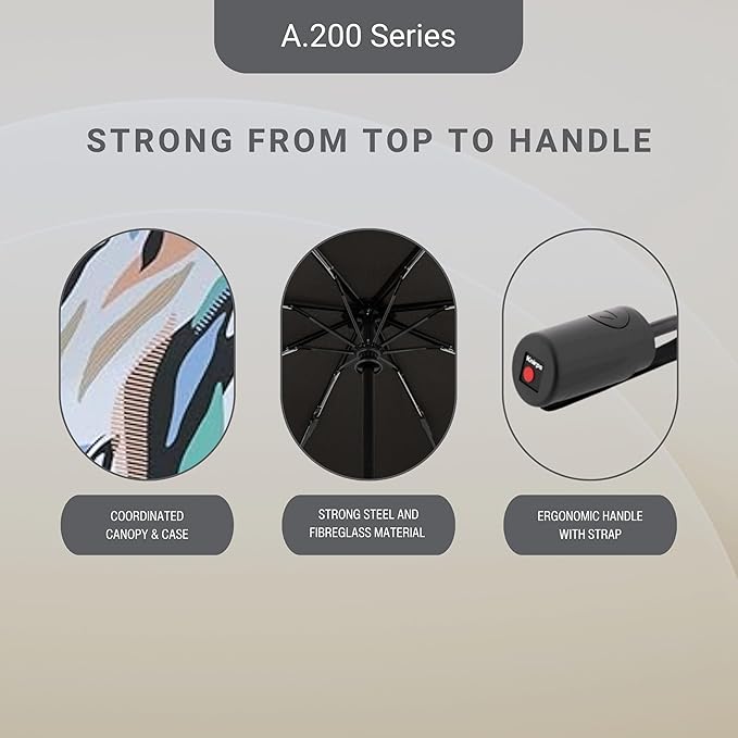 - Withstands Wind Speeds Up to 75 MPH: Engineered for severe weather, the A.200 has been wind tunnel tested to endure powerful gusts up to 75 mph, using 8 reinforced ribs and a flexible steel-aluminum frame for optimal wind load management.