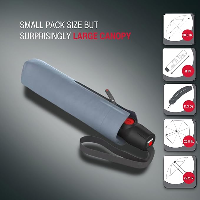 Knirps T.200 Duomatic Compact Rain Umbrella in Fog– Wind Tunnel Tested to 93 mph, Aluminum Steel Fiberglass Frame, 38in Canopy, OEKO-TEX, High-Performance Automatic Travel Umbrellas