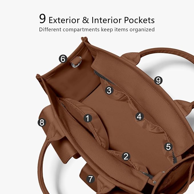 TOPDesign Heavy-Duty Canvas Tote Bag for Women, Adjustable Crossbody/Shoulder Handbag with 9 Pockets, Everything Tote