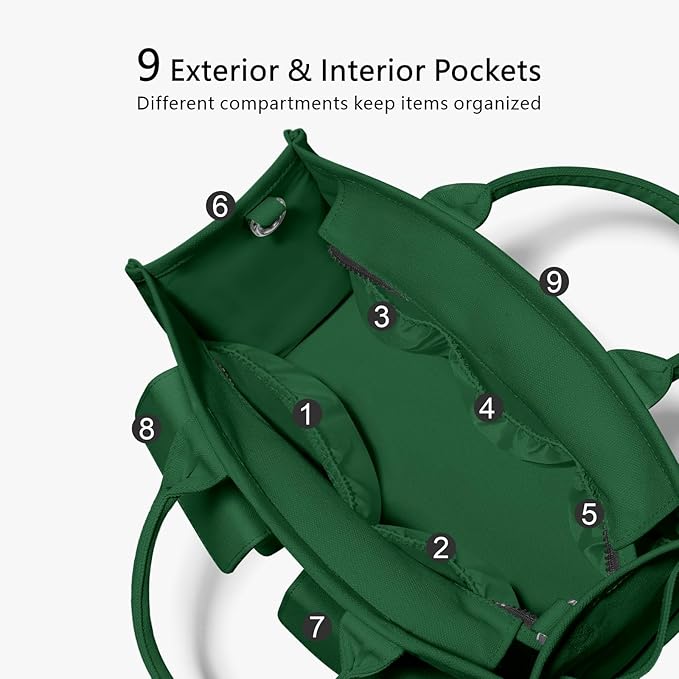 TOPDesign Heavy-Duty Canvas Tote Bag for Women, Adjustable Crossbody/Shoulder Handbag with 9 Pockets, Everything Tote