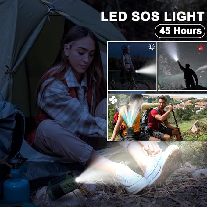 - 【Multi-Functional Fan 】 Beyond its role as a portable fan, it also serves as: A high-brightness LED flashlight to illuminate paths during nighttime walks. An SOS emergency light (activated by long-pressing the power button). A mobile phone charger for on-the-go power needs. A dual-purpose design that functions as both a neck-hanging fan and a desktop fan, adapting to various scenarios