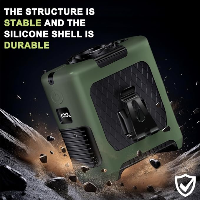 - 【Silicone Protective Case 】 Designed for outdoor activities and workplace scenarios, our shock-resistant silicone case features reinforced corner protection to safeguard critical areas of the fan body. This ensures enhanced durability and prolongs the product's lifespan