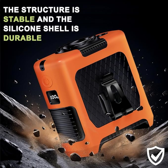 - 【Silicone Protective Case 】 Designed for outdoor activities and workplace scenarios, our shock-resistant silicone case features reinforced corner protection to safeguard critical areas of the fan body. This ensures enhanced durability and prolongs the product's lifespan