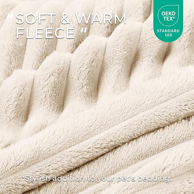 LINENLUX 1 Pack 3 Soft Fleece Dog Blanket for Pet Washable Warm Cat Puppy Fluffy Calming Flannel Beige Small