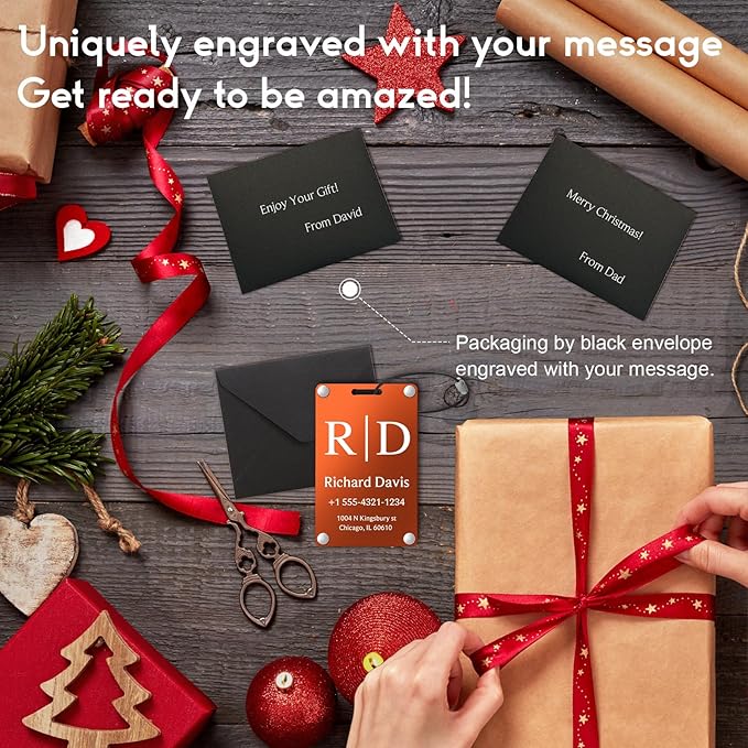 Personalized Luggage Tags for Suitcases - Monogram Style Aluminum Custom Luggage Tags for Backpacks & Bags, Sturdy, Waterproof & Heavy Duty (Orange/Card-Sized)