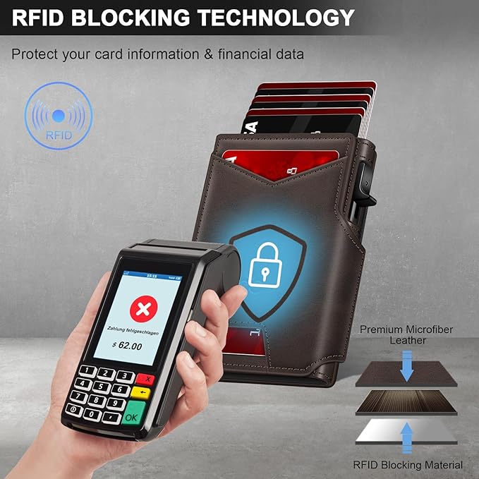 - RFID BLOCKING: The RFID Card holder of this metal wallet for men blocks unauthorized scans of your credit cards, debit cards, and driver’s license, providing maximum protection for your private information.