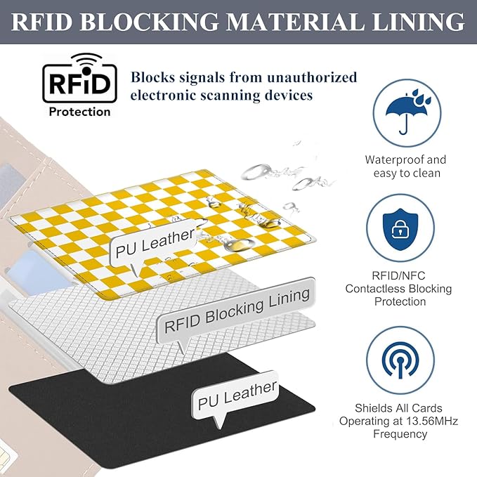 Passport Holder for Travel Essentials, RFID Premium Leather Passport Wallet Cover Case for Travel Must Haves Accessories, Passport Book Holders for Women Men Cute Yellow Checkered