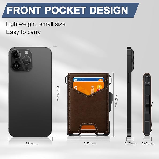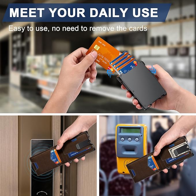 - UPGRADED DESIGN FOR QUICK ACCESS: GHUKY mens slim wallet combines high-quality leather and premium metal, featuring a smooth pop-up mechanism. The ergonomic design allows for effortless card retrieval with a gentle slide of the side button.