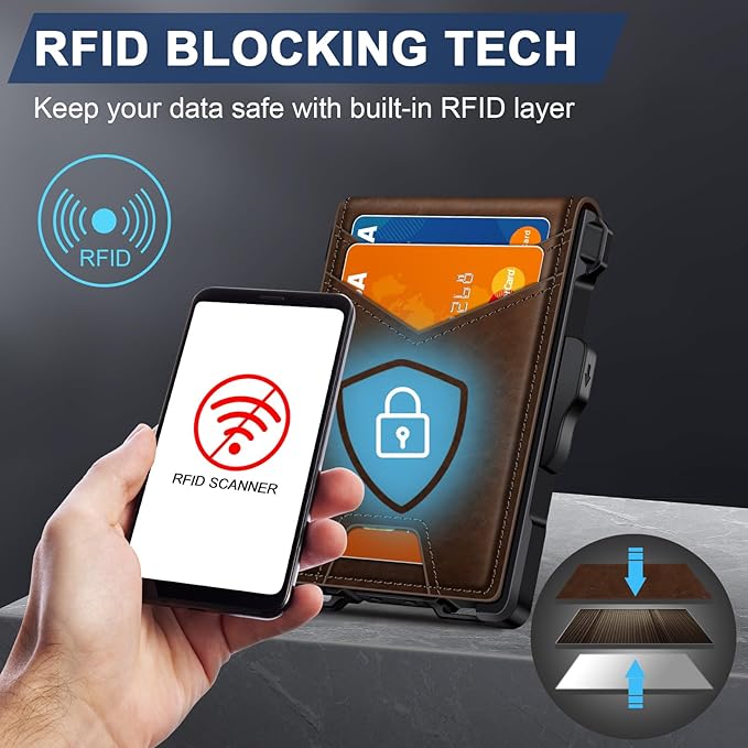 - RFID BLOCKING SECURITY: This RFID wallet incorporates advanced RFID blocking technology, protecting credit cards, debit cards, driver's licenses, and other personal information from unknown scanning devices, maximizing the protection of your privacy.