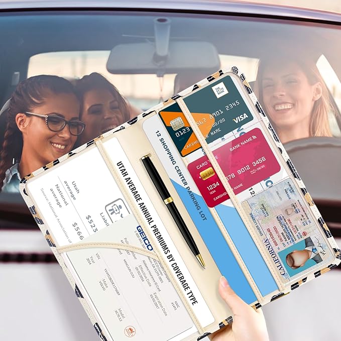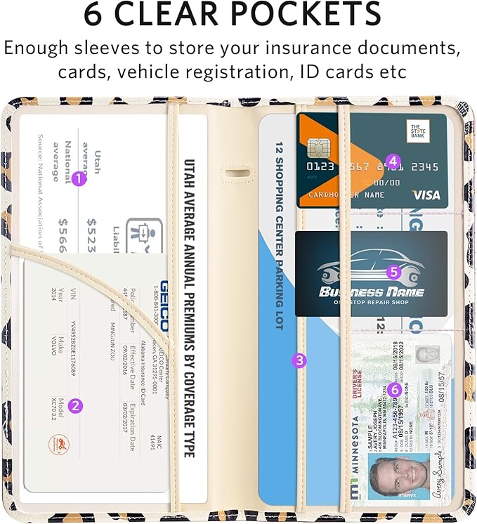 - 6 Comparments: Comes with 3 large pockets for insurance documents, vehicle registrations cards and other valueable information. And 3 small pocket for driver's license, ID cards, business cards, key contact information cards.