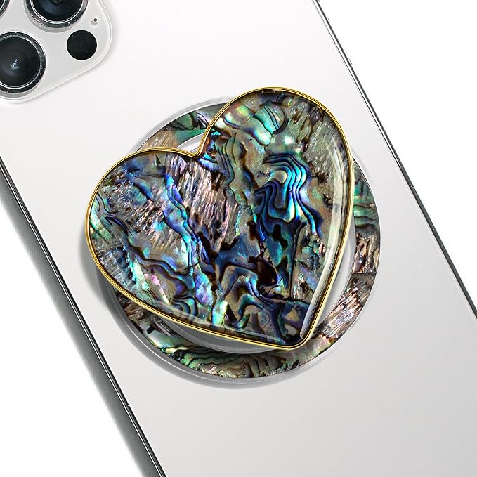 OnTheGrip Cute Natural Seashell Design Heart Shape Collapsible Mobile Phone Grip Stand Holder for Smartphone Tablet Cell Phone Accessory (Black Fresh Water)