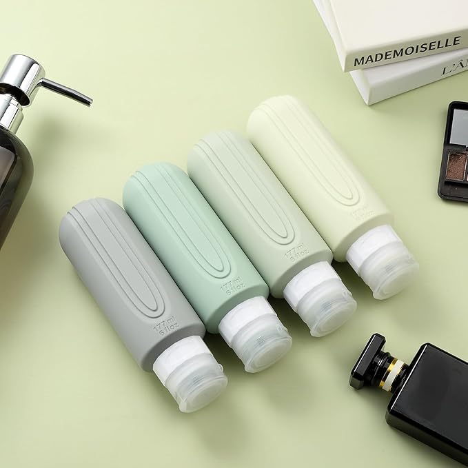 - Oversize 6oz travel bottle: Featuring a PVC toiletry bag, these travel-sized silicone bottles are perfect for storing and dispensing your favorite shampoos, lotions, and other liquids. Designed for convenience and durability, this travel set is a must-have for all your adventures.
