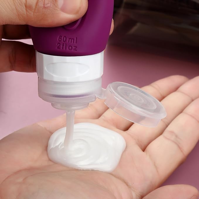 - TSA carry on approval: 4 pack 2 oz silicone travel bottles, very suitable for shampoo, conditioner, shower gel, lotion, hand sanitizer and shower gel. It is equipped with a high-quality zipper transparent wash bag, which saves space and allows you to travel long distance freely like a professional.