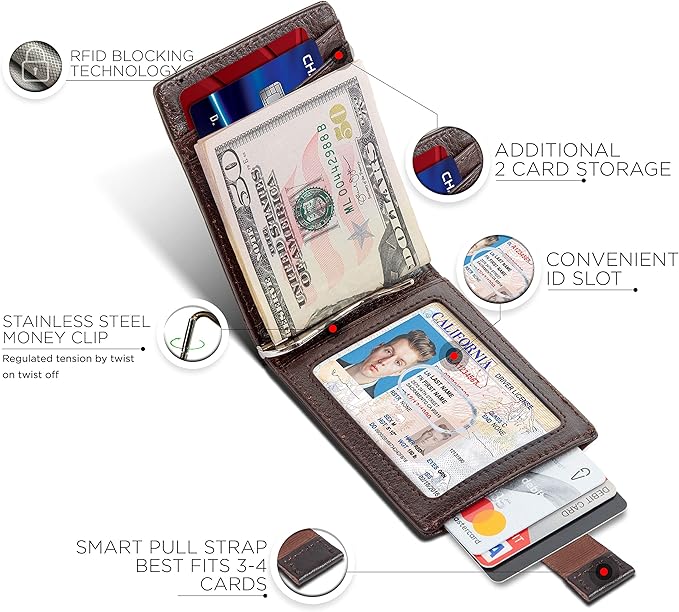 - Minimalist Airtag Wallet - Beautifully crafted from full grain leather, it sports a minimalist design for men who want a slim leather wallet without sacrificing functionality. The ultra-thin wallet is designed to fit directly in the pocket for easy carrying. It best fits 6-8 cards and 10+ bills with an innovative stainless- steel money clip. Wallet Size: 3.9" in. x 2.85" in. 0.5" in.