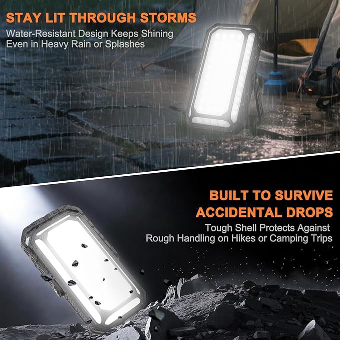 - Camping Lights Rainproof & Adventure: Made of high quality ABS material, ensuring a long-time durability and water resistant, heat-resistant, freeze resistant, trouble-free in tough environment.Handles rain, mud, and accidental drops.360° Hooks + Adjustable Stand hang from tents, backpacks, or attach to tripods for perfect lighting angles.