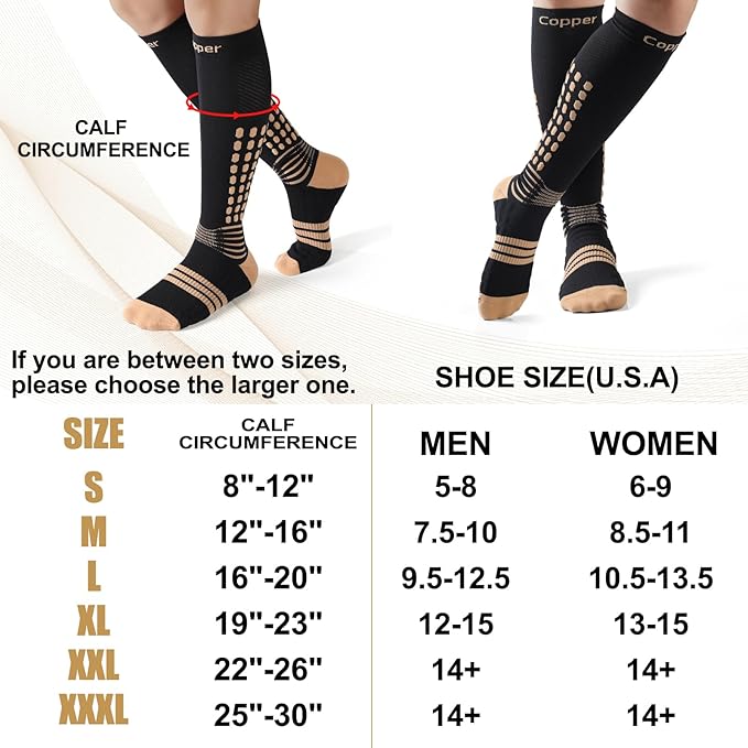 - Professional Patented Copper Compression Socks For Better Blood Circulation, Pain Relief and Injuries Recovery. Medical Knee-high Graduated Stocking For Plantar Fasciitis Pain Relief. ELITE Compression Copper Socks for Women & Men, Running, Nurses, Flight, Travel, Day & Night Comfort Wear. 20-30 mmHg