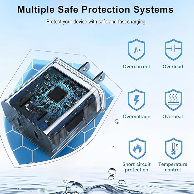 - [ Safe Dual Port USB C iPhone 17 Charger Block ] iPhone 17 charger iPhone charging adapter USB-C PD power has a built-in multiple protection system to avoid over voltage, overcharging, overheating, short circuit, etc. iPhone charger can automatically match the current required by the device to charge your iPhone/iPad device quickly, safely and stably.