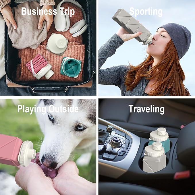 - SMOOTH TWIST-TO-FOLD FUNCTION THAT’S FUN TO USE: With an innovative twist-and-fold design, folding and unfolding the travel water bottle is smooth and quick. The flexible silicone structure makes adjusting the portable water bottle size effortless—both practical and satisfying to use every day. Check out the tutorial video on the product page to easily master the folding process.