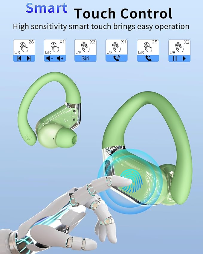 Wireless Earbud, Bluetooth 5.4 Headphones IP7 Waterproof for Sport, 50H Running Wireless Earphones with ENC Noise Cancelling Mic, Deep Bass Over Ear bud with Earhooks for Android, iOS, Workout, Gym