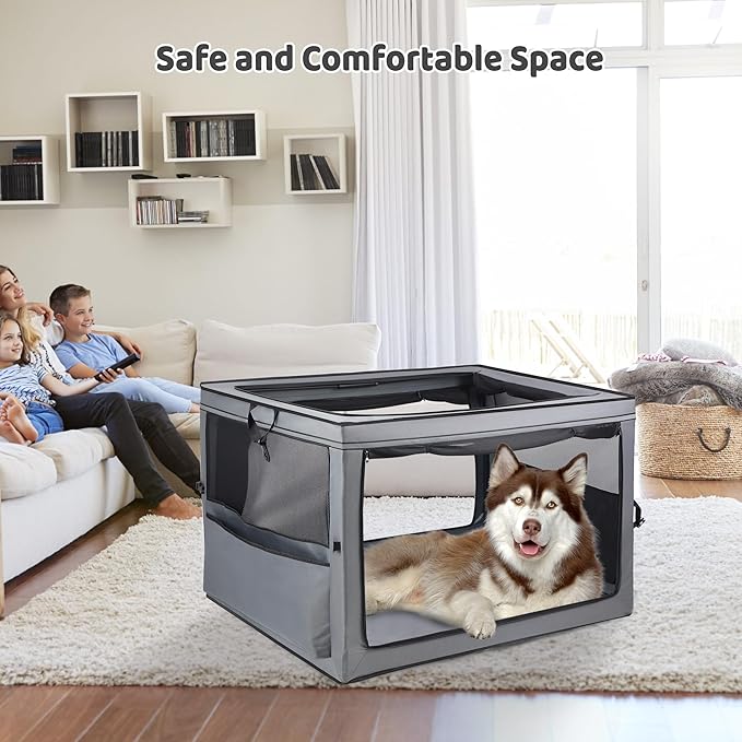 Foldable Pet Crate for Dogs & Cats, Portable Soft-Sided Kennel with Oxford Fabric, Lightweight & Easy to Carry, Travel & Indoor Use, Extra Large