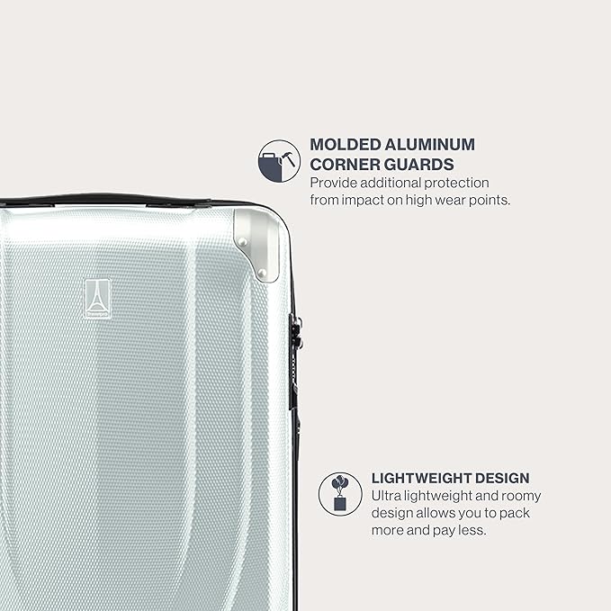 - 100% Polycarbonate hard shell is engineered for impact-absorbing flexibility in a lightweight design. Stylish hard shell finish helps reduce the visibility of scratches and scuffs. Molded aluminum corner guards add impact protection to high-wear points.