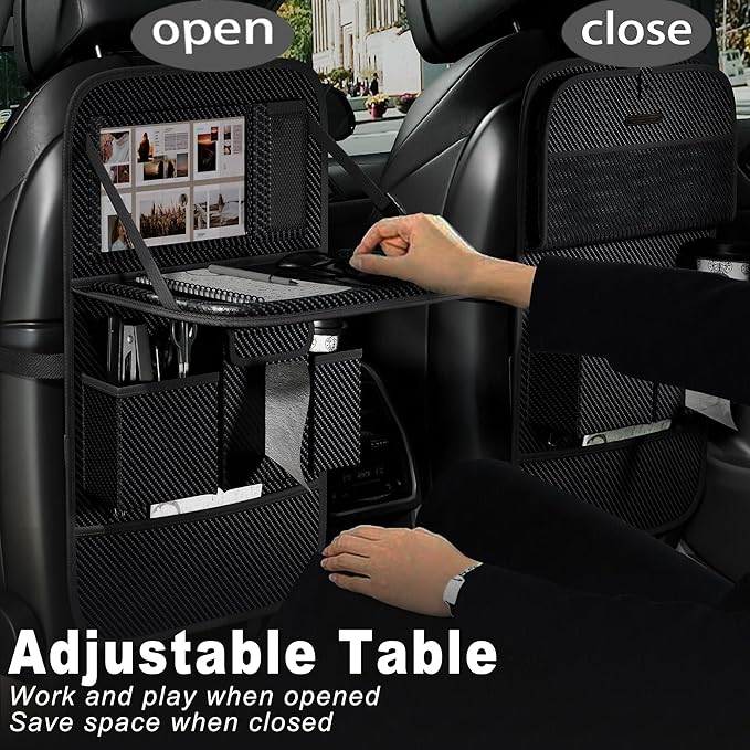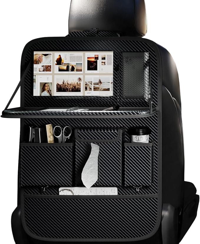 Car Seat Organizers,Multi-functional Back Seat Protectors, Storage Pouches, and Tray Holders (for Cars, Kids, Seat Back and Rear Seats) (Carbon Fiber, 1 Pcs)