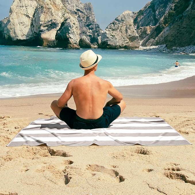 Cotton Oversized Beach Towel - 40 x70 Inch Extra Large Striped Pool Towel, Big Soft Terry Cloth Grey Cabana Swim Towel