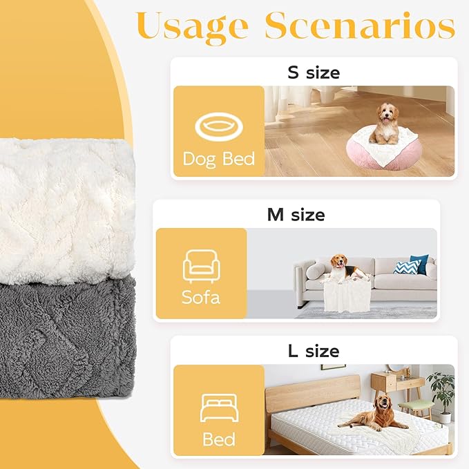 - Soft Fluffy Pet Blanket: Pet blanket material is made of 280 GSM polyester,which is very soft. It is so cozy and comfortable that can help your pets fall asleep fast. Your dog, cat, or other pets will love to snuggle up on this warm and cozy blanket.