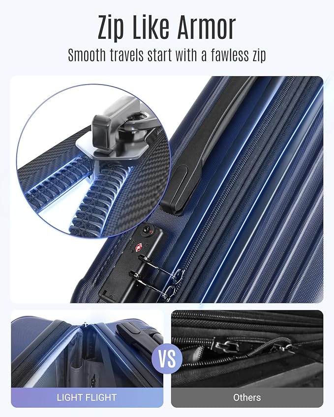 LIGHT FLIGHT Luggage Sets, Durable Hard Shell 3 Piece Set Suitcase with Spinner Wheels, Hardside Lightweight Luggage set with TSA Lock, Large Travel Luggage Set (20" 24" 28"), Navy Blue
