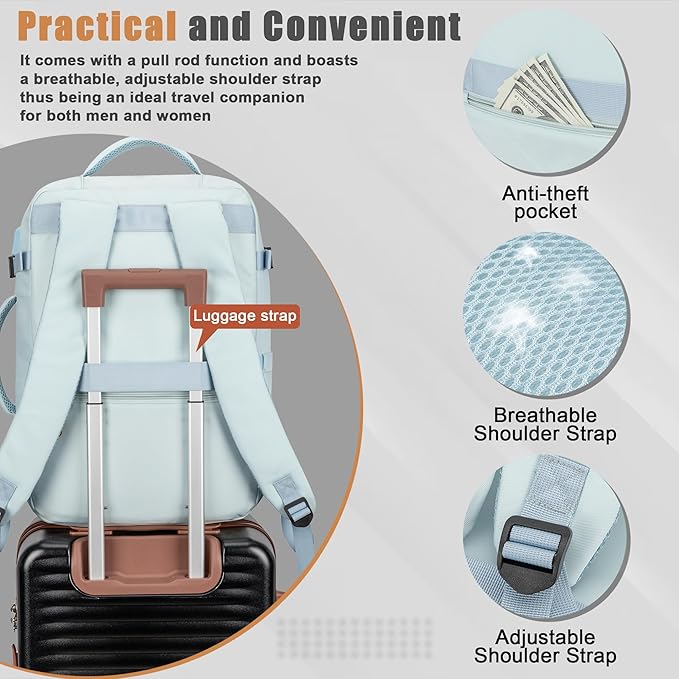 - 🔌【USB Charging Port – Stay Powered Anywhere】Equipped with a built-in USB charging port, this travel laptop backpack allows you to charge your devices on the go. Simply connect your power bank inside and plug in your cable externally – ideal for daily commutes, business trips, or long flights