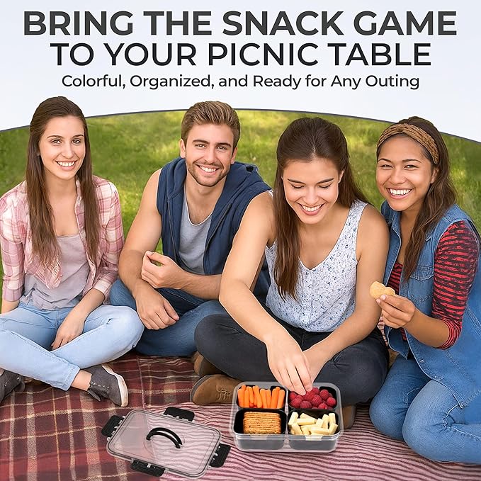 - [ Divided Serving Tray with Lid ]: Keep your snacks organized and fresh with our divided serving tray with lid. This snack divider container with lid ensures all your snacks stay separate and easy to access.