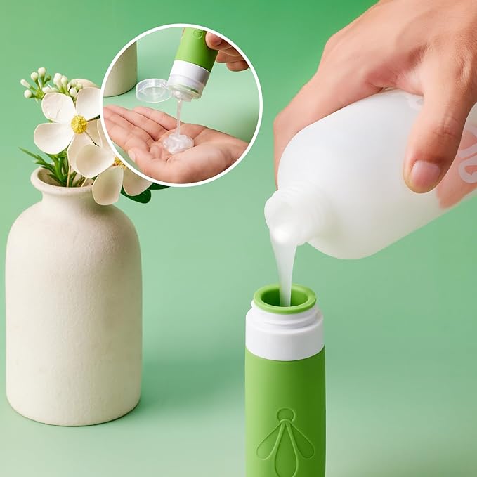 - Premium Food-Grade Silicone & PET: our BPA Free travel toiletry containers are safe to use not only for your cosmetic liquids like shampoo, conditioner, facial cream or body lotion. but also ideal airplane travel essentials for your vitamins, pills or jewelries. Plus they are dishwasher-safe for reuse.