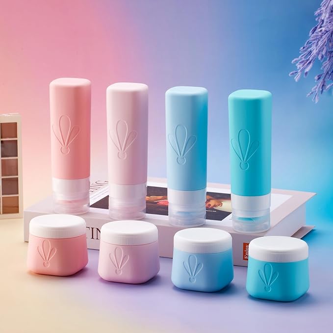 - Premium Food-Grade Silicone & PET: our BPA Free travel toiletry containers are safe to use not only for your cosmetic liquids like shampoo, conditioner, facial cream or body lotion. but also ideal airplane travel essentials for your vitamins, pills or jewelries. Plus they are dishwasher-safe for reuse.