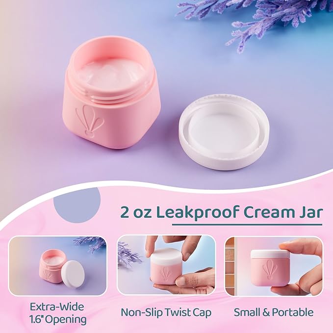 - 2oz Wide-Mouth Silicone Cream Jars: Extra-wide 1.6-inch opening (4cm) allows easy scooping with fingers or spatulas, paired with anti-slip screw lids for leakproof storage of thick creams, balms, or serums. INSFIT small travel containers for creams are your ideal travel accessories.