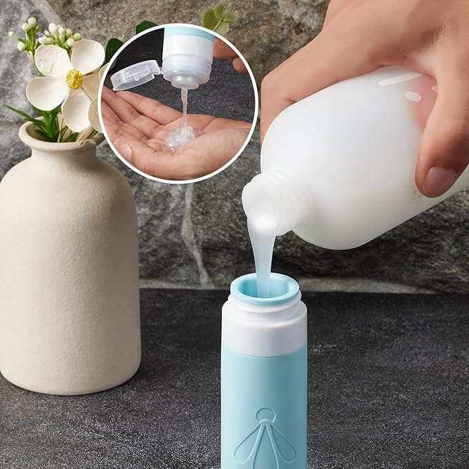 - Premium Food-Grade Silicone & PET: our BPA Free travel toiletry containers are safe to use not only for your cosmetic liquids like shampoo, conditioner, facial cream or body lotion. but also ideal airplane travel essentials for your vitamins, pills or jewelries. Plus they are dishwasher-safe for reuse.