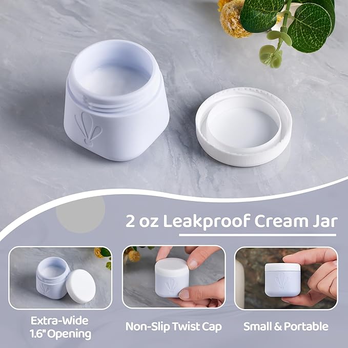 - 2oz Wide-Mouth Silicone Cream Jars: Extra-wide 1.6-inch opening (4cm) allows easy scooping with fingers or spatulas, paired with anti-slip screw lids for leakproof storage of thick creams, balms, or serums. INSFIT small travel containers for creams are your ideal travel accessories.