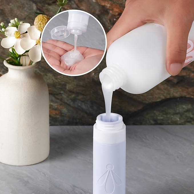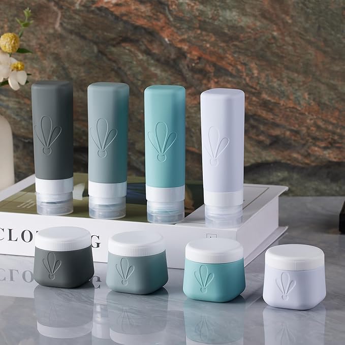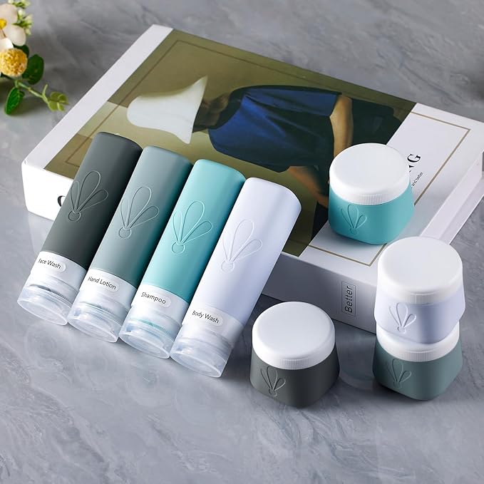 - Premium Food-Grade Silicone & PET: our BPA Free travel toiletry containers are safe to use not only for your cosmetic liquids like shampoo, conditioner, facial cream or body lotion. but also ideal airplane travel essentials for your vitamins, pills or jewelries. Plus they are dishwasher-safe for reuse.