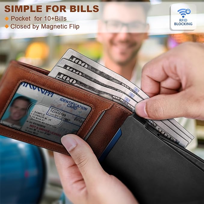 - RFID THEFT PROTECTION--Our wallet is equipped with RFID technology, providing 100% effective protection against information theft. Safeguard your personal privacy and financial security with peace of mind.