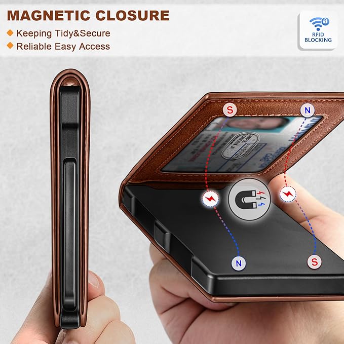 - MAGNETIC FLIP COVER--The magnetic closure on the wallet ensures secure and easy flipping, seamlessly attaching to the card box surface. It's effortless and reliable, never compromising functionality;