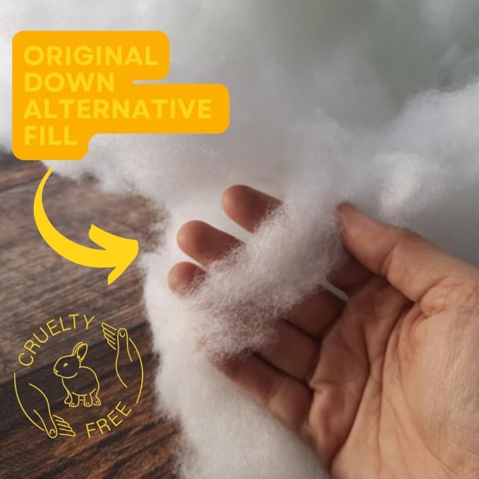 - HYPOALLERGENIC DOWN ALTERNATIVE FILL – Filled with cruelty-free polyester fibres that mimic the softness and loft of natural down. Lightweight, hypoallergenic, and durable, this fill doesn't clump.