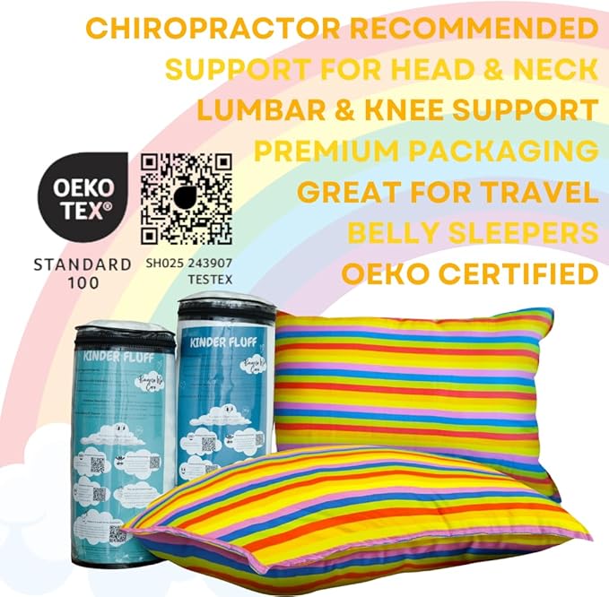 - CERTIFIED CHILD-SAFE – Kinder Fluff pillows are OEKO-TEX Standard 100 certified, free from harmful chemicals, and CPC-approved to meet all U.S. child safety regulations. Parents can rest easy knowing these pillows are safe, durable, and made with eco-conscious materials that meet strict international standards.
