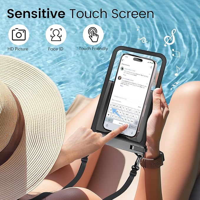 - Sensitive Touch Screen:Waterproof phone pouch is made of PVC material for smooth touch screen operation, providing excellent responsiveness when using your cell phone (including facial ID unlocking and talking), allowing you to send text messages, take photos and browse information without taking out your cell phone, which brings more convenience to your life.