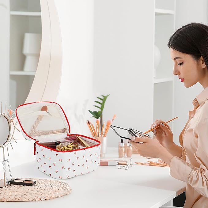- ✅ Large Capacity: This spacious makeup bag (16cm x 16cm x 25cm) is perfect for travelers, fitting all your cosmetic essentials, skincare products, stationery, and more. Its compact design allows easy storage in handbags or suitcases.