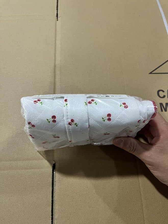 Prite Large Makeup Bag for Women Quilted Floral Cotton Cosmetic Bag Cute Coquette Aesthetic Floral Travel Toiletry Bag (Red Berries)