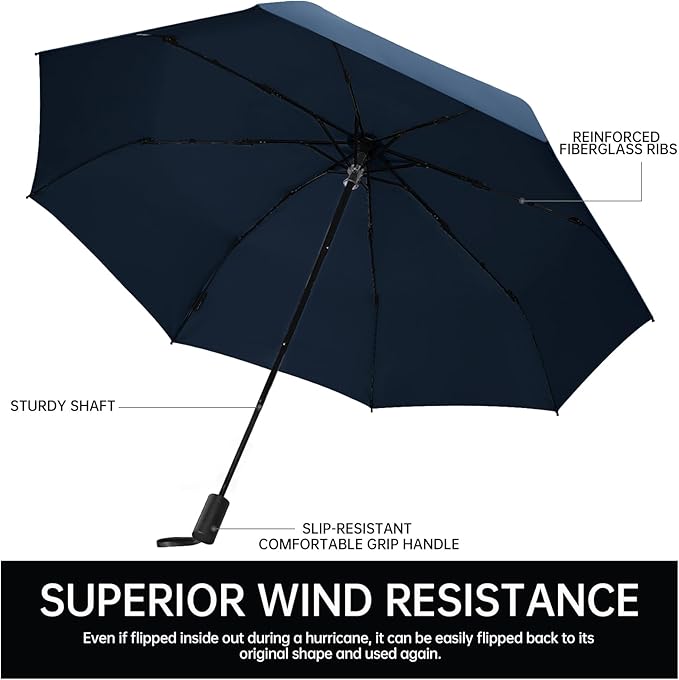 - Durable & Sturdy: Each of our Trenovo pocket umbrellas is made of industrial strength fiberglass frame, the all-metal shaft and 6 reinforced fiberglass ribs help you handle any harsh weather conditions at any time. The canopy is also made from rip-resistant pongee fabric that is also super quick to dry, making it luxurious to touch but also extremely powerful against rain.