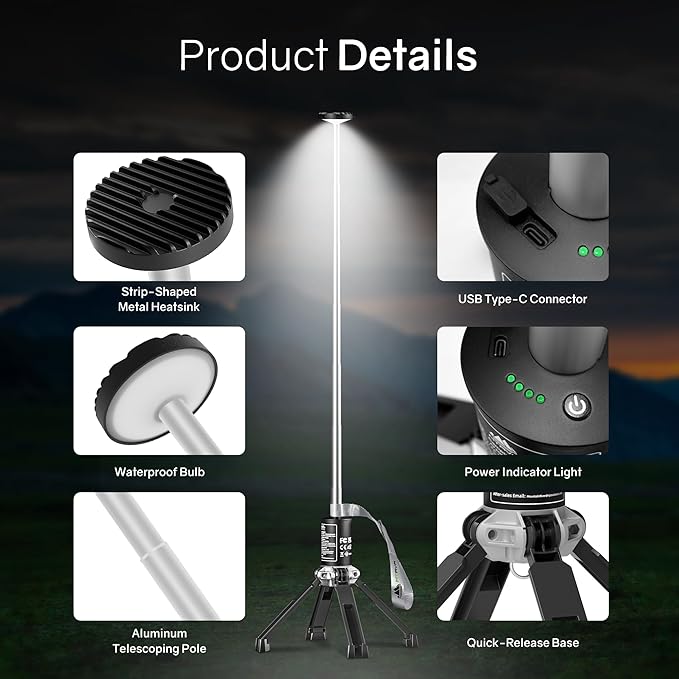- 【Telescoping Lights for Camping】: it has a pull-ring design and a 7-section telescopic pole that can be extended to 50.7 inches, allowing you to experience a wide lighting range