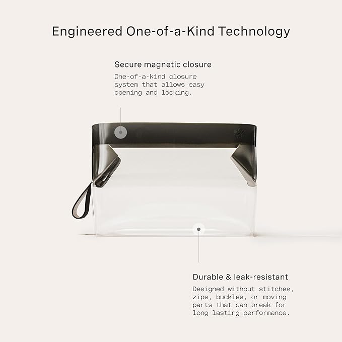- INNOVATIVE MAGNETIC CLOSURE: This magnetic toiletry bag features a one-of-a-kind closure system that’s quick, secure, and omnidirectional. Open it wide for easy access or lock it for added security, all without snaps, zips, or buttons.
