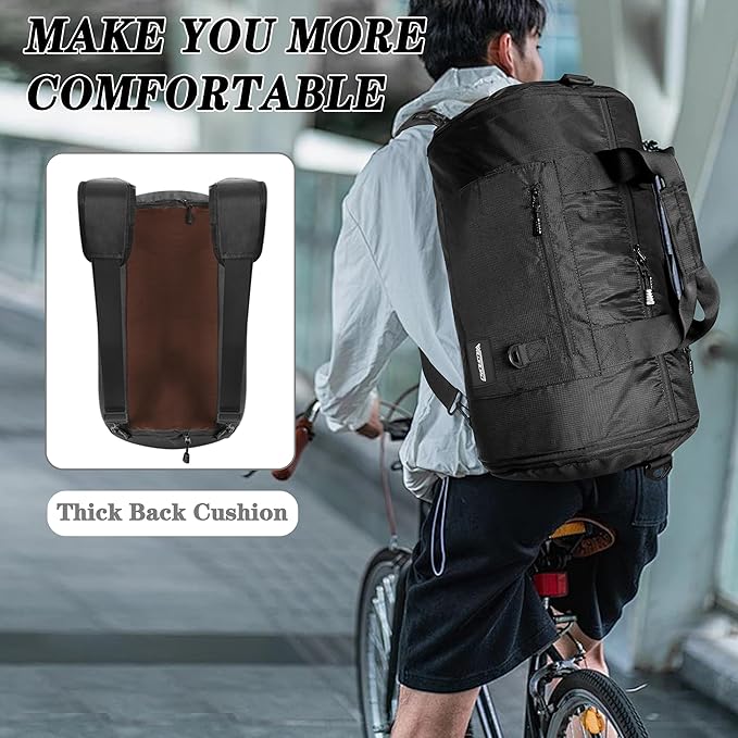 - 【Comfortable Carrying System】: The bottom of the gym bag is equipped with custom thickened memory foam. The detachable shoulder straps and padded shoulder cushions are adjustable and can be locked at any length, allowing comfortable backpack-style carrying to reduce weight and free up your hands.