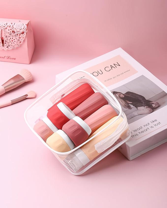 Travel Bottles for Toiletries 8 Pack, Travel Size Toiletries, Tsa Approved Travel Size Containers 3oz, with Travel Essentials Clear Bag, Leak Proof Silicone Squeezable Creams Jars