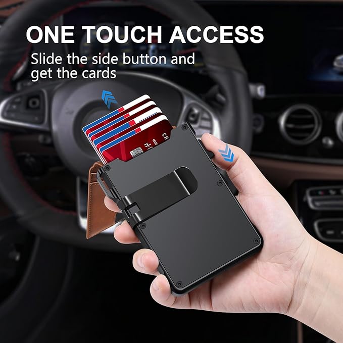 - POP-UP ERGONOMIC DESIGN - One-click pop-up button fans out cards instantly for quick access, ensures that your essentials are easily accessible without the bulk. KIKVES men's money clip wallet is perfect for busy professionals, gym-goers, or travelers needing efficiency, combines fashion and functionality.